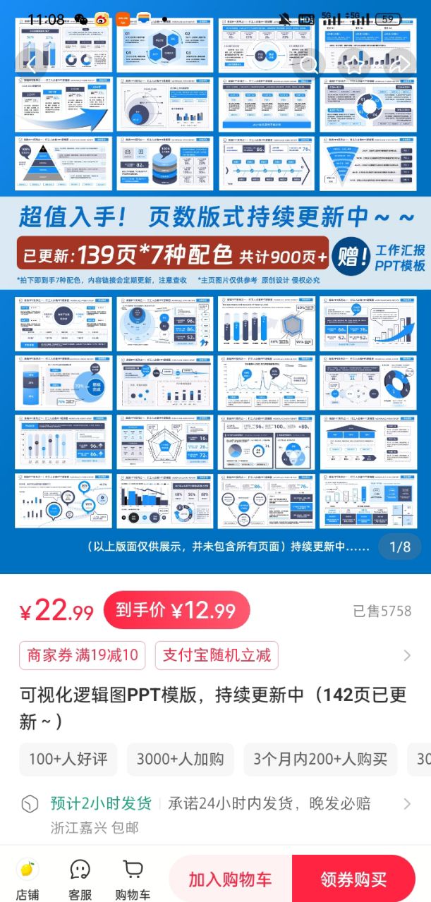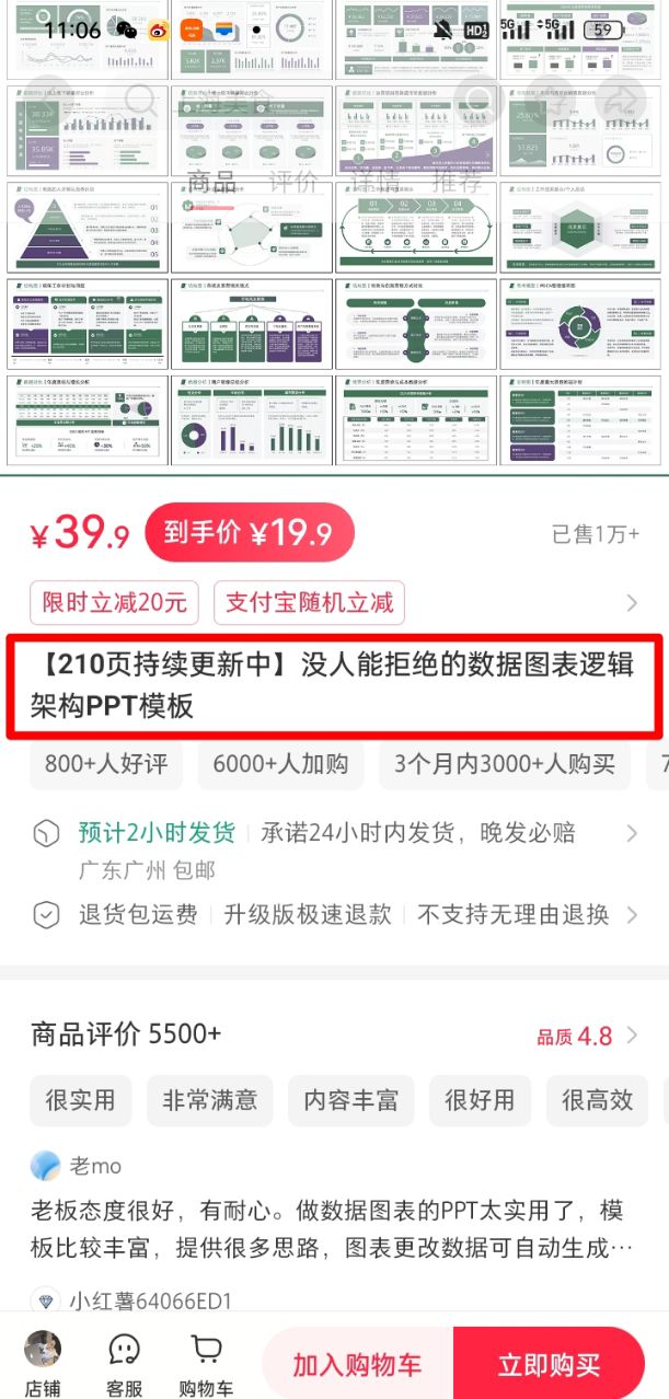 更聪明的是满减券套路,几乎所有做得好的店铺都有“满15减3”、“满20减5”的券,用户本来只想买一个5块的模板,一看“再买两个就能减3块”,大概率会再挑两个凑单,本来只花5块,最后花了12块,商家销量上去了,用户还觉得占了便宜,双赢的事。